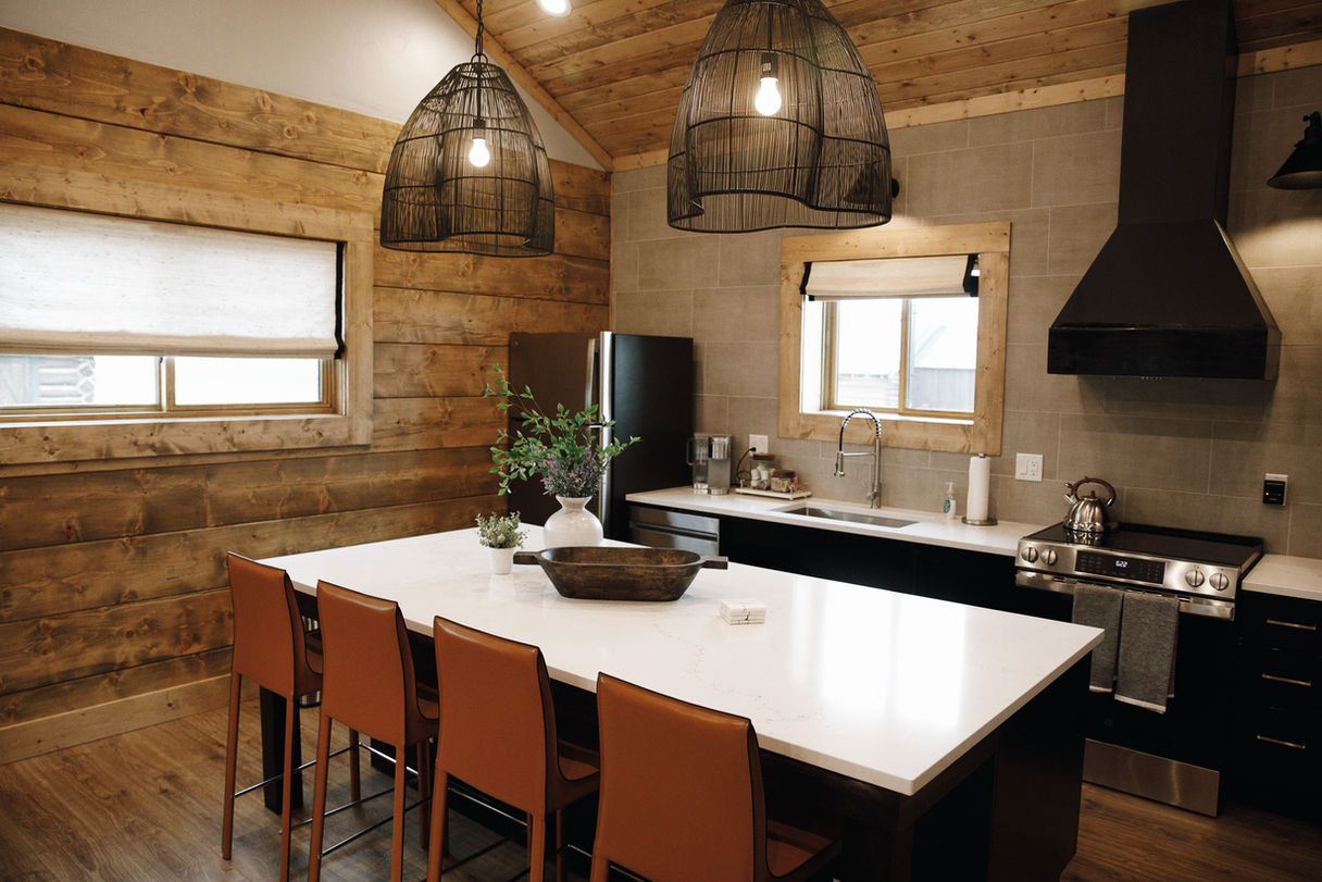 Calm and comfortable guest cabins inspired by the contemporary mountainside aesthetic.